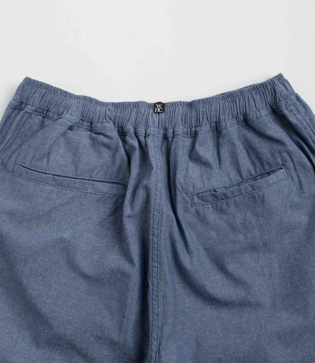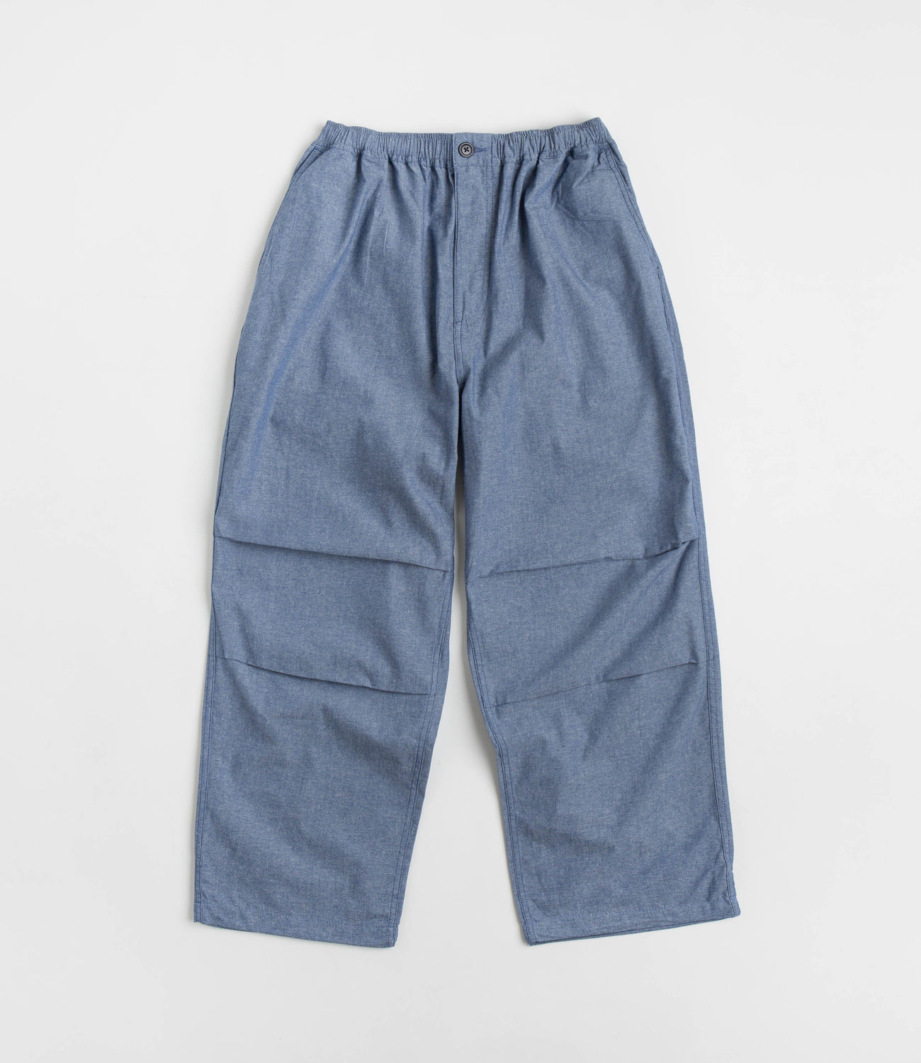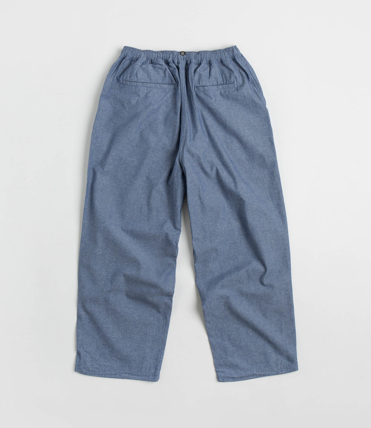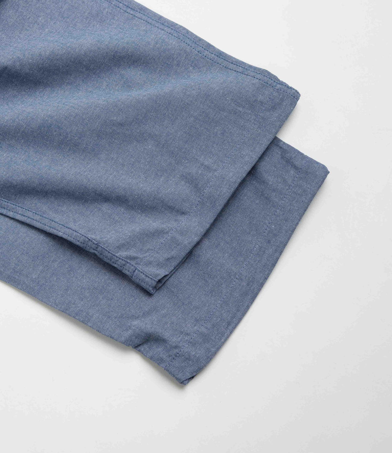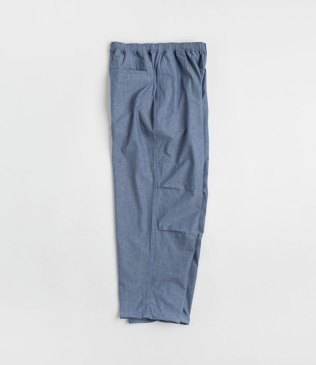 Workware Lounge Pants in Chambray. Arriving as part of the brand’s latest collection, these unisex Workware pants are crafted from 100% cotton. Featuring an elasticated waistband with a button secured fly, these blue Workware pants also feature toggle-cord cuffs and adjustable waistband straps. Finished with two front pockets, two rear pockets and with reinforced knee pleat detailing.