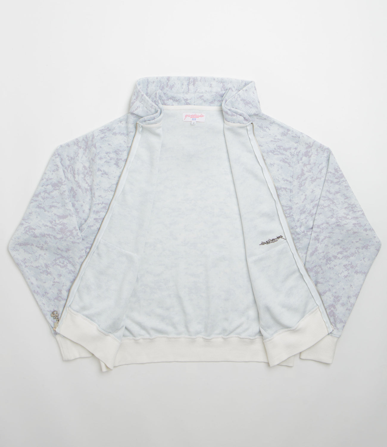 Yardsale Camo Zero Hoodie in Off White. Made from 100% cotton jersey, this regular fitting Yardsale hoodie is designed with a unique Bioball wash. Featuring a Therma-lined hood, camouflage details and a kangaroo front pocket, this off white Yardsale hoodie is finished with ribbed cuffs, a woven elastic hem and embroidered branding.