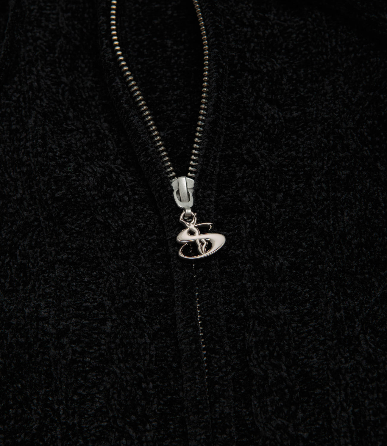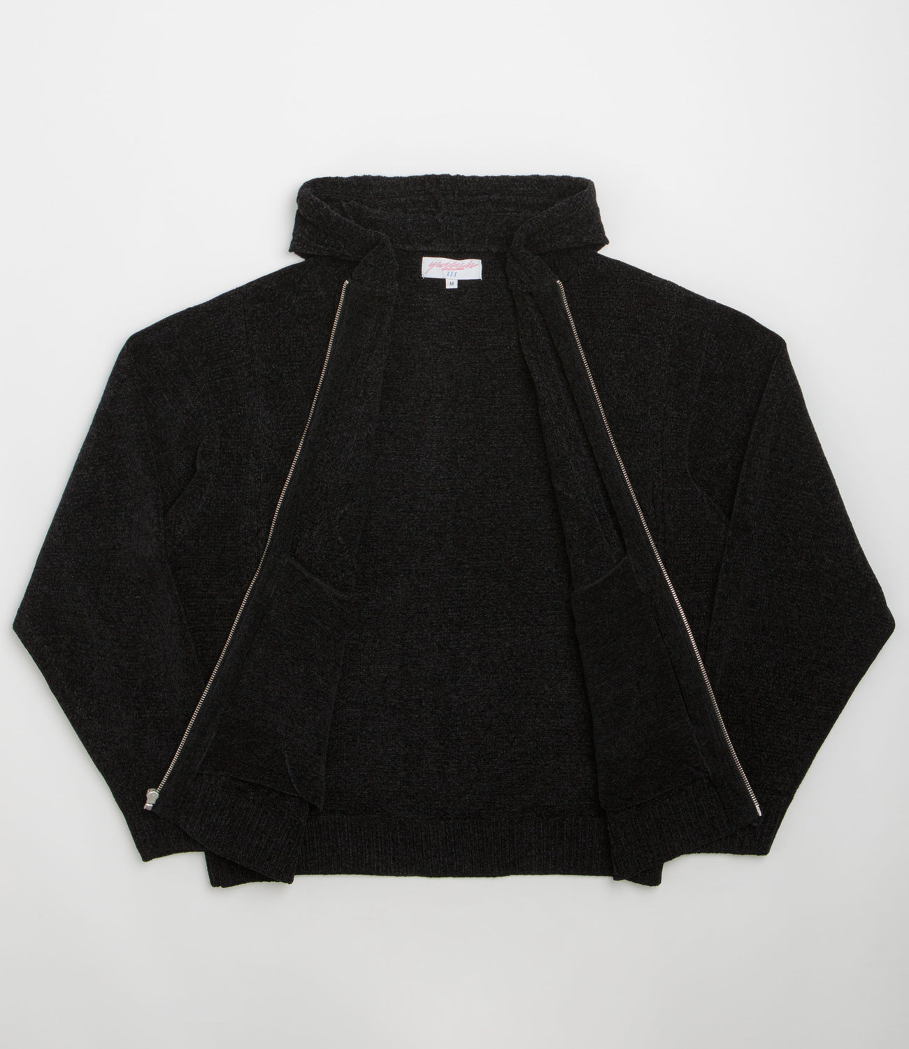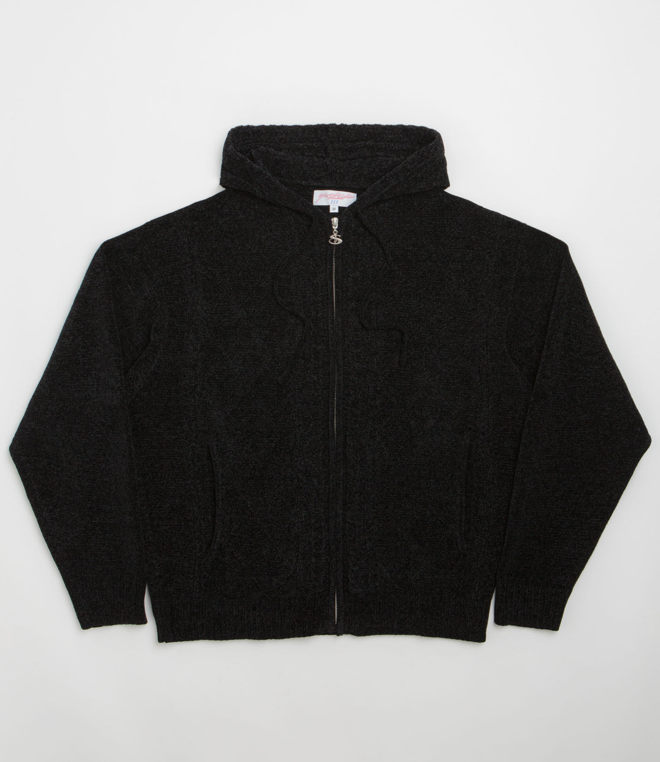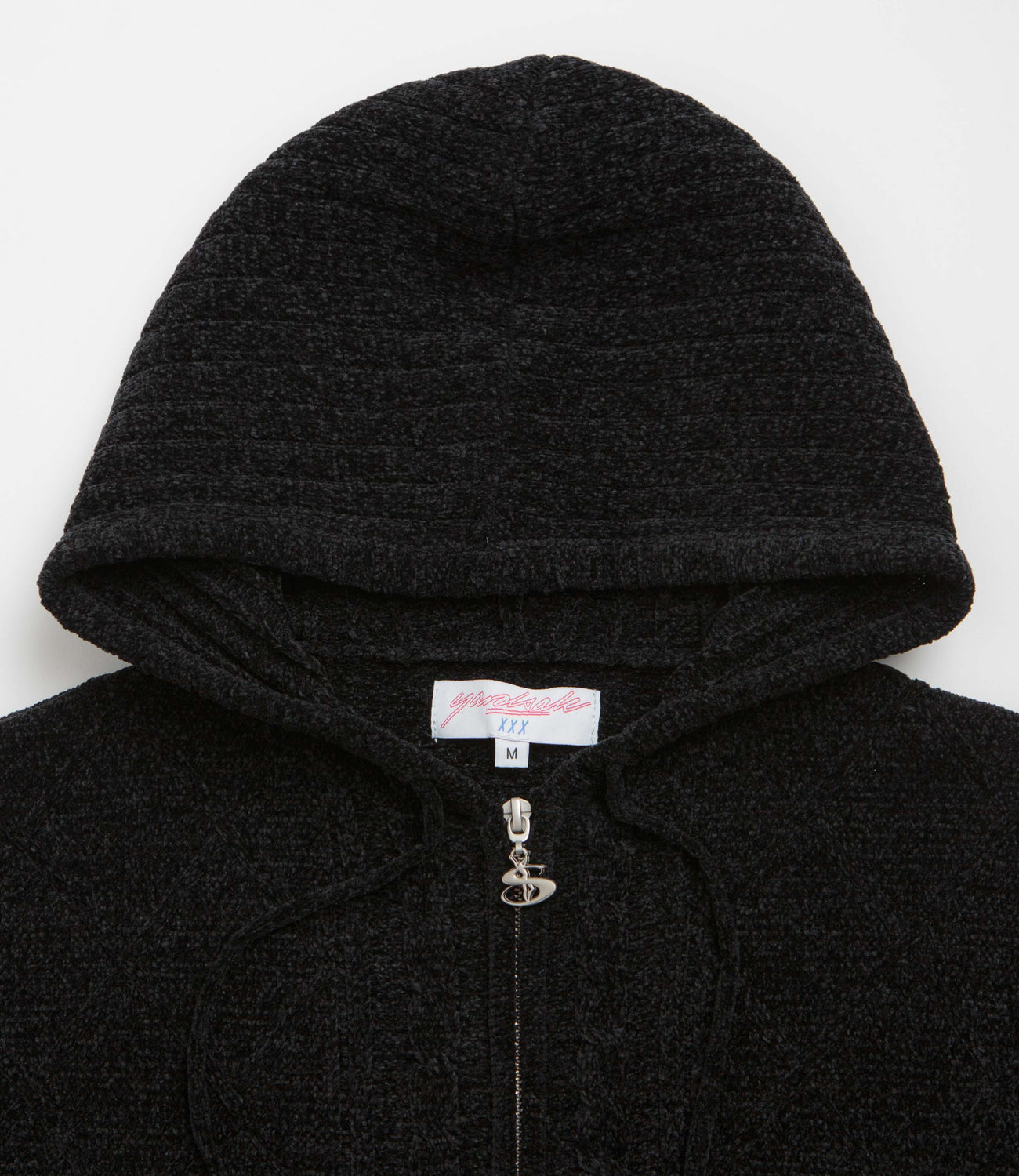 Yardsale Dreamer Chenille Hoodie in Black. Designed with an all-over jacquard knit pattern, this Yardsale hoodie is made from 100% cotton chenille. Featuring an adjustable drawstring hood, a full length zipper and ribbed cuffs, this black Yardsale hoodie is finished with a custom YS zip pull.