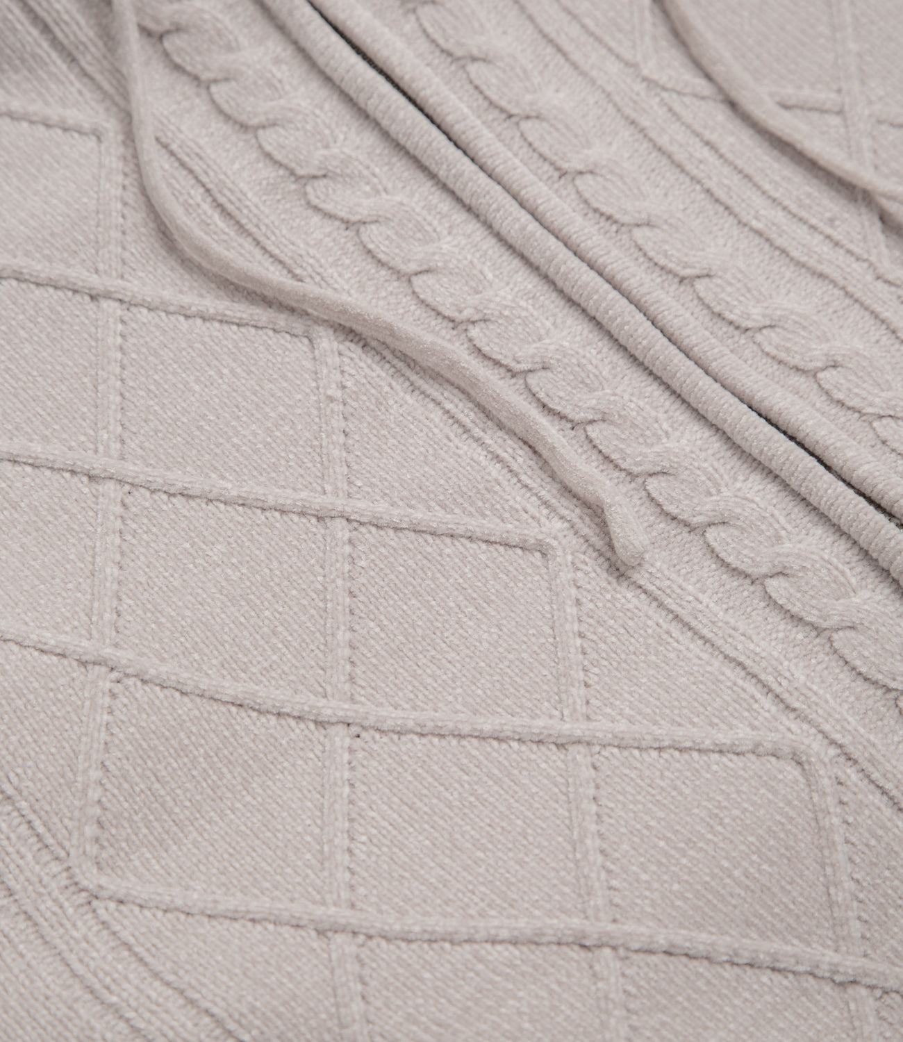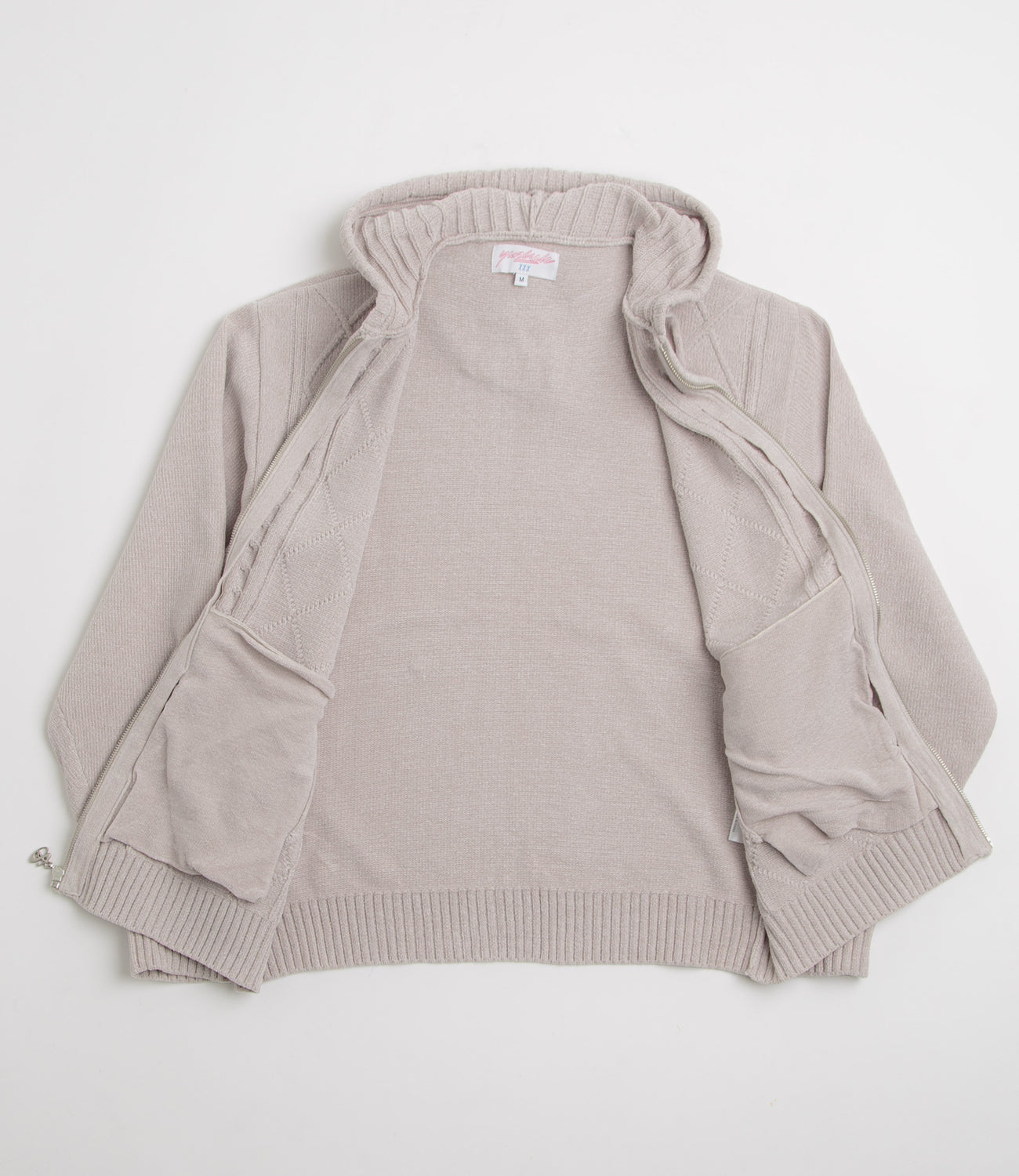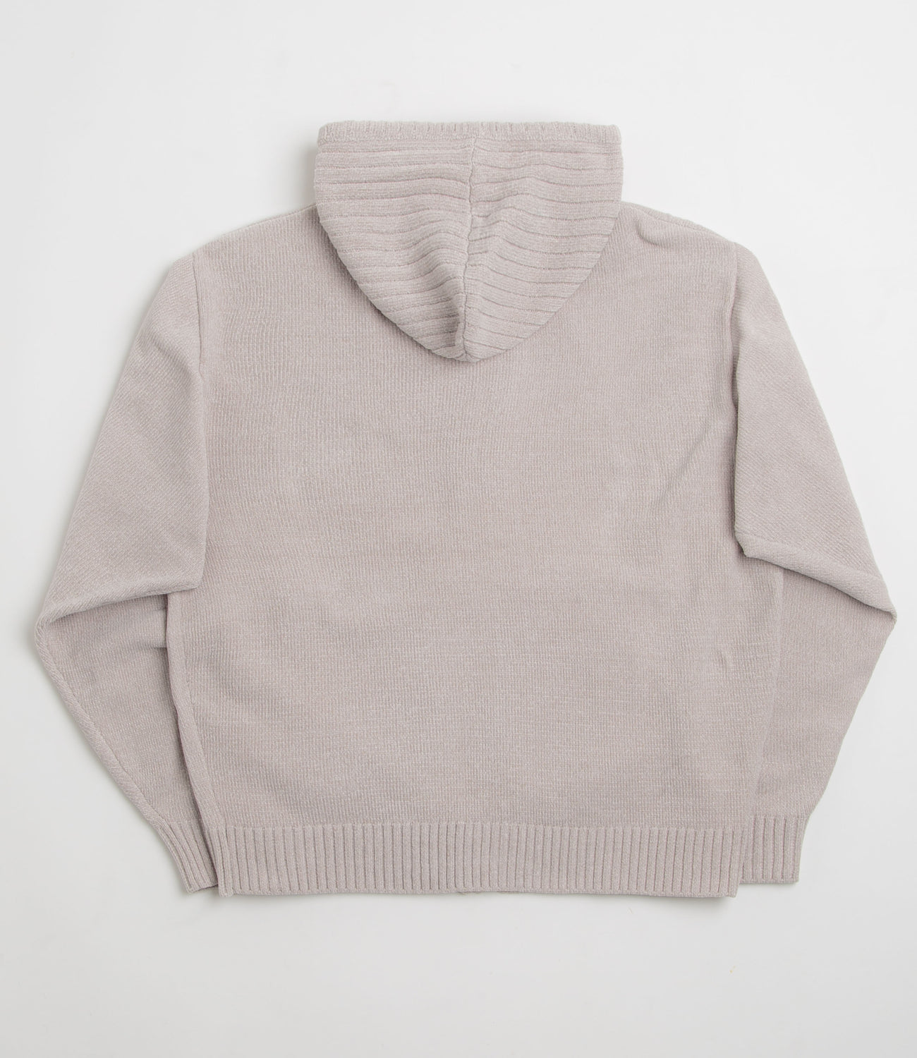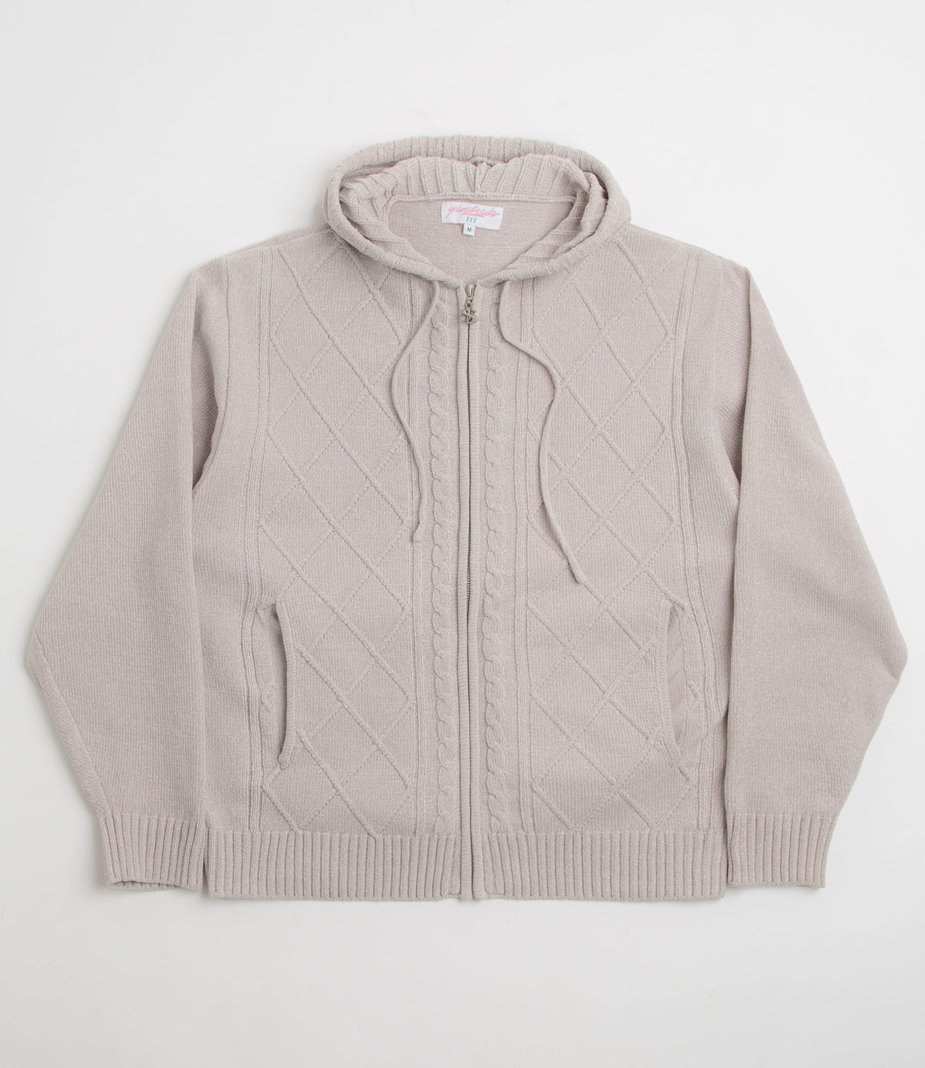 Yardsale Dreamer Chenille Hoodie in Light Grey. Regular fitting and made from 100% cotton chenille, this Yardsale hoodie is designed with an all-over jacquard knit pattern. Featuring a full length zipper fastening, ribbed cuffs and a drawstring hood, this green Yardsale hoodie is finished with a custom YS zip pull.