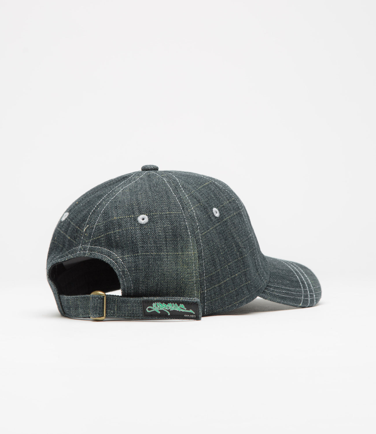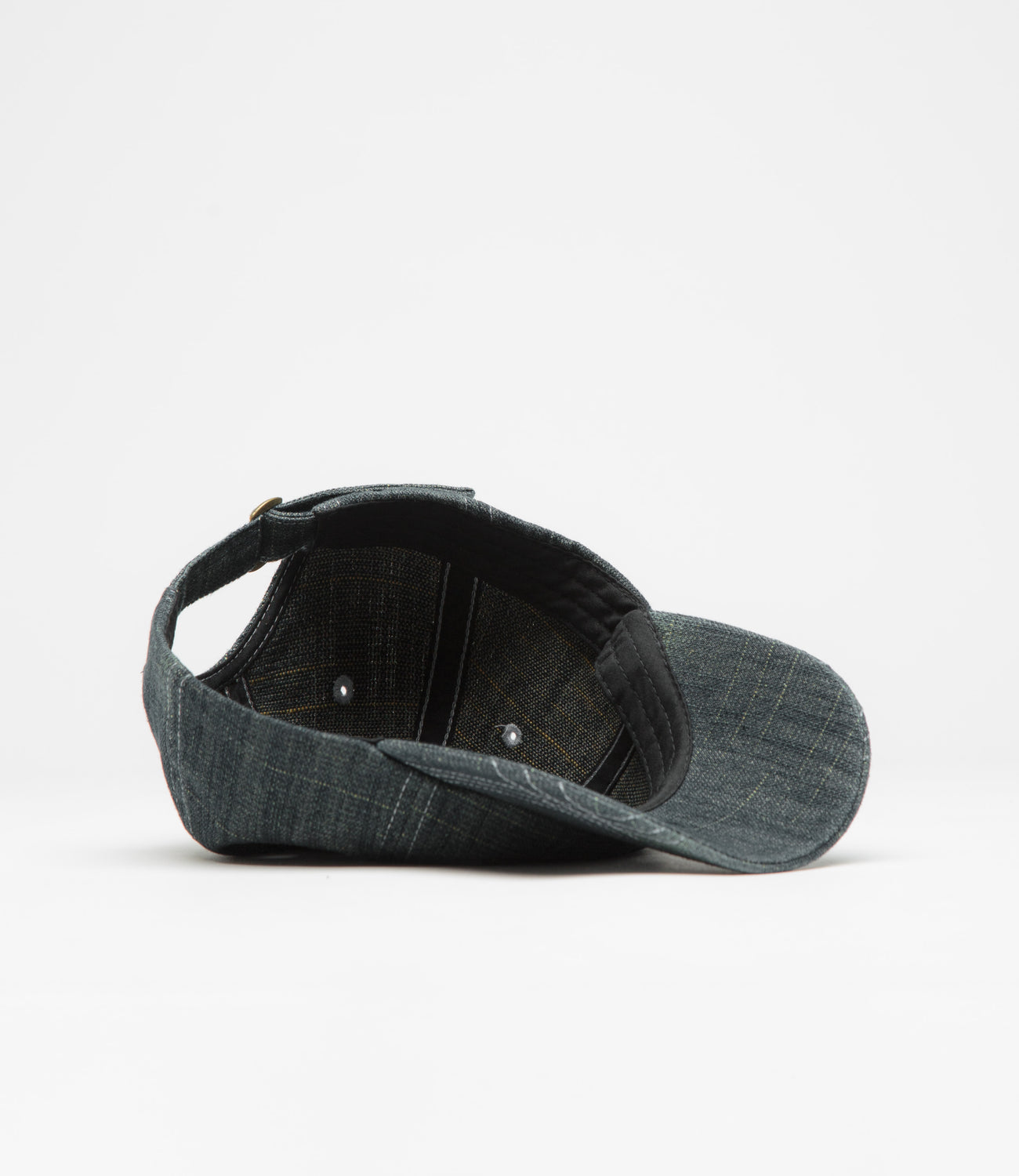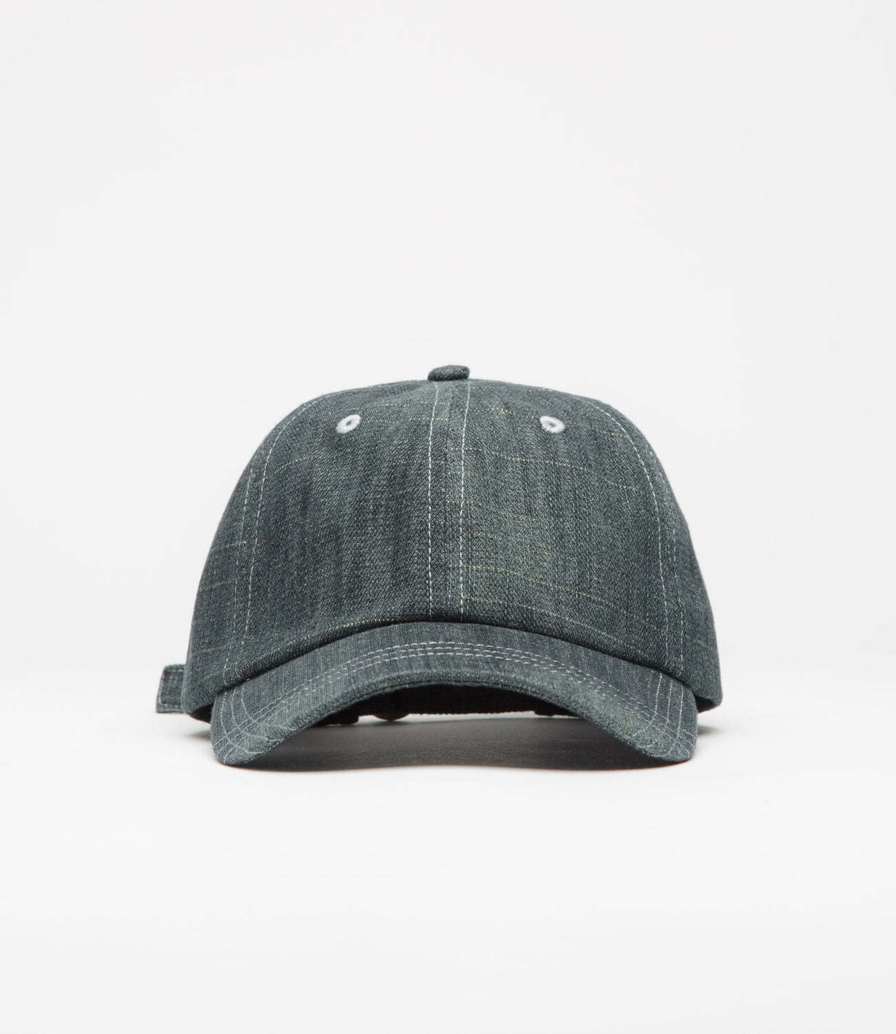 Yardsale Faded Slub Denim Cap in Dark Blue. Single sized with a faded wash, this six panel Yardsale cap is made from 100% cotton slub denim. Featuring embroidered eyelets, contrast stitching and a curved peak, this black Yardsale cap is finished with an adjustable rear fastening and YS badge detailing.