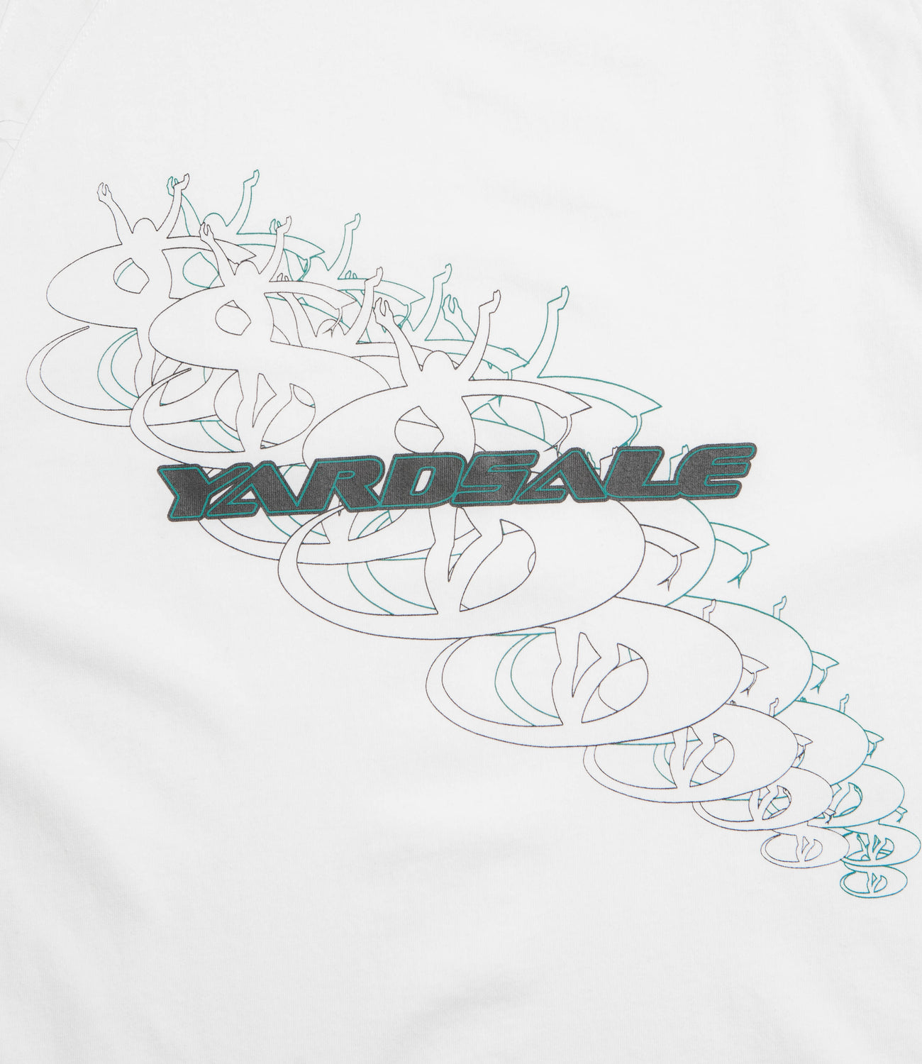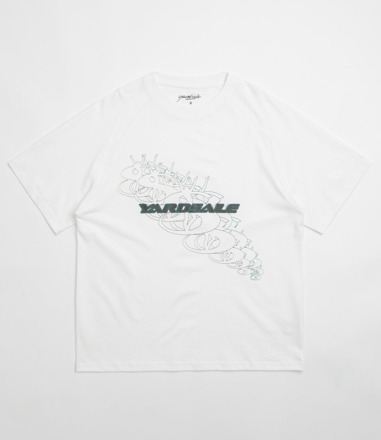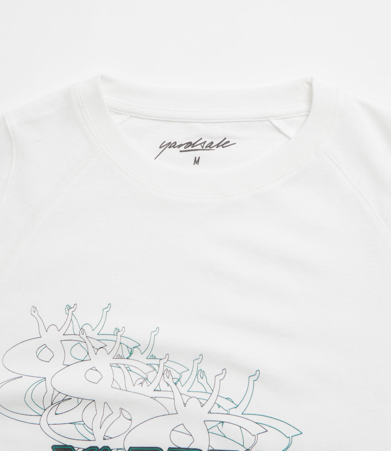 Yardsale Jeans Co II T-Shirt in White. Made from 100% cotton, this block tone Yardsale t-shirt is designed with a rib knit collar and contrasting shoulder panel details. Finished in white with a printed chest graphic.