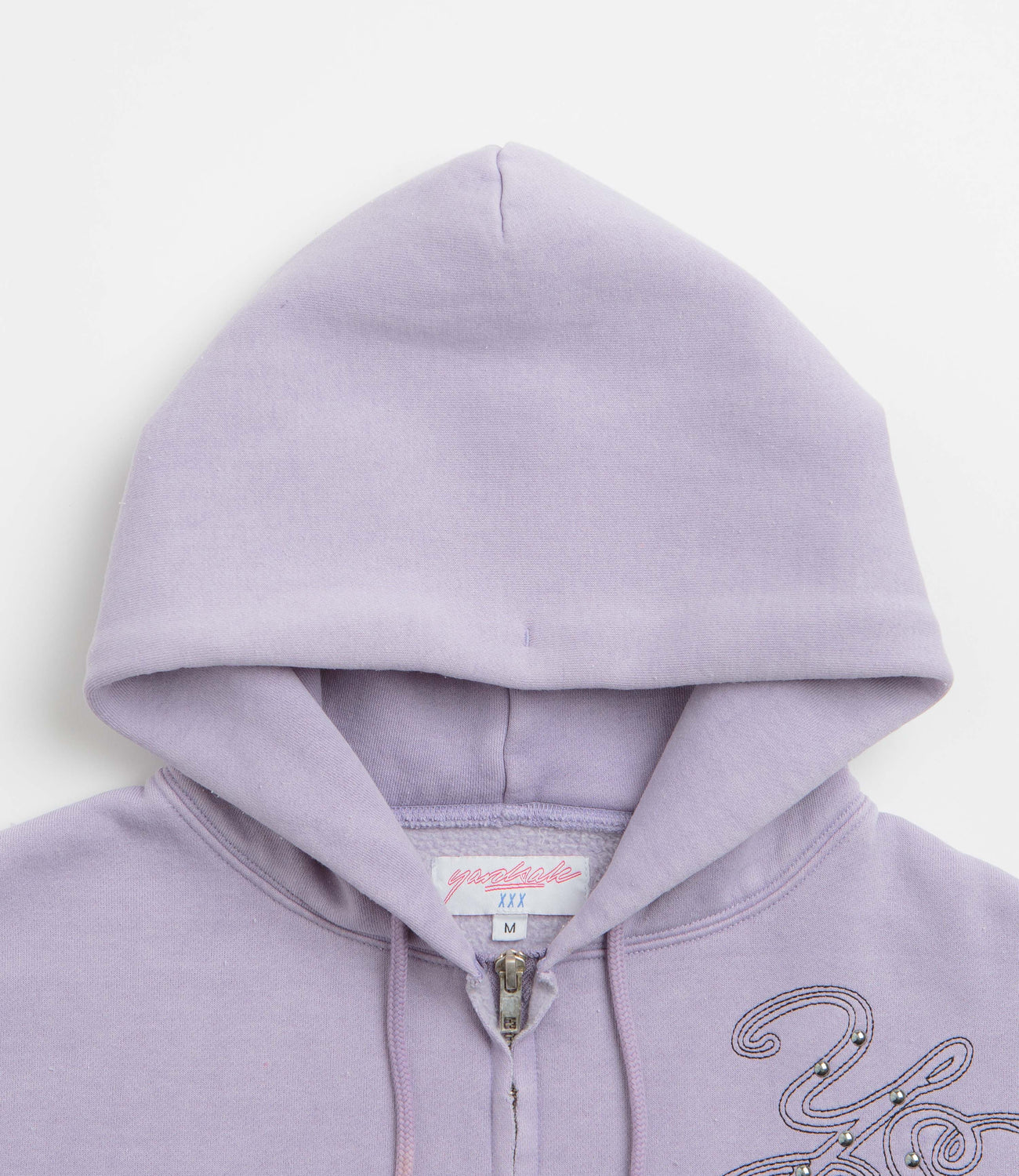 Regular fit and made from 100% cotton, this hoodie is styled with a dip-dyed finish for a standout look. Designed with an adjustable drawstring hood, full-length zip and two front pockets, it’s finished in blue with ribbed cuffs, stud detailing and embroidered accents for a layered, everyday feel.