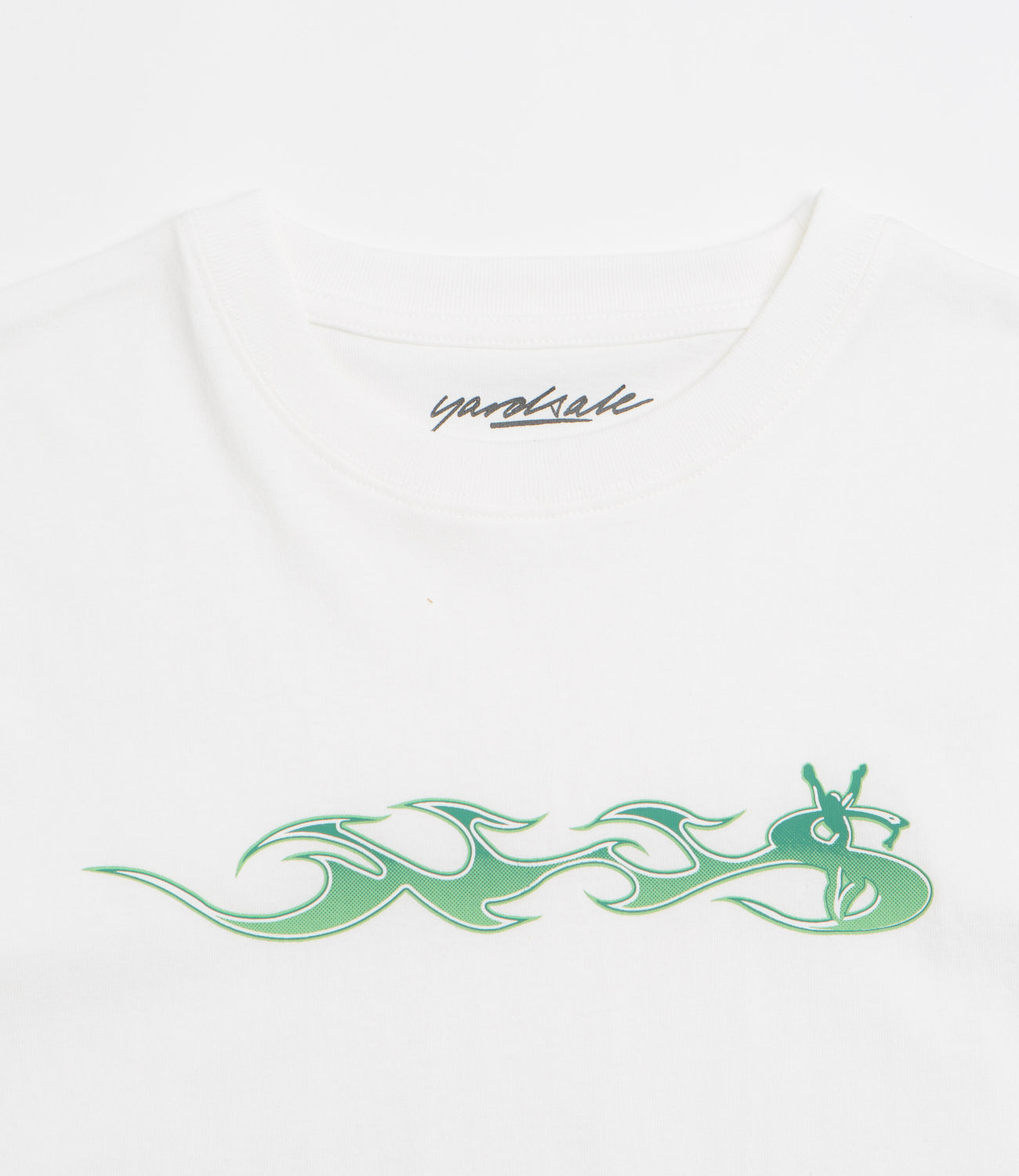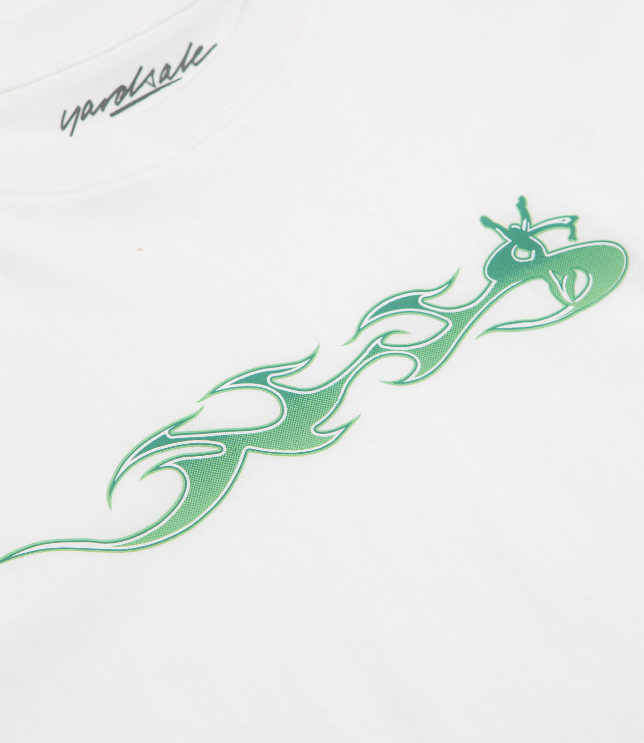 Yardsale Phantasy Flame T-Shirt in White. Made from 100% cotton, this regular fitting Yardsale t-shirt is designed with a classic crew collar and a straight hem. Finished in white with a screen printed chest graphic.