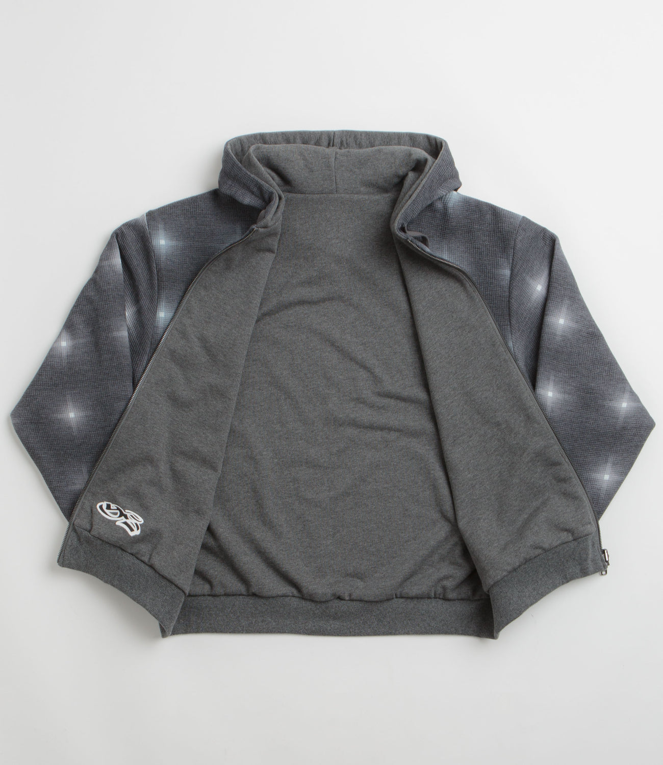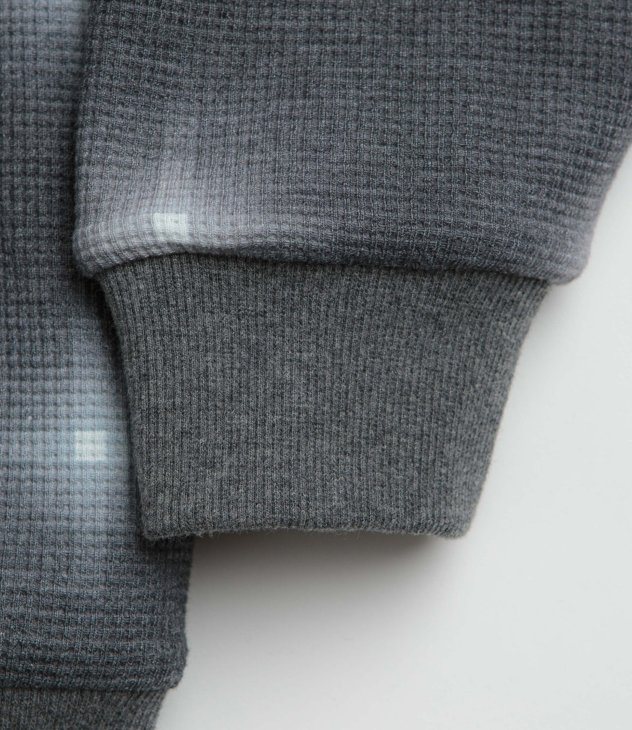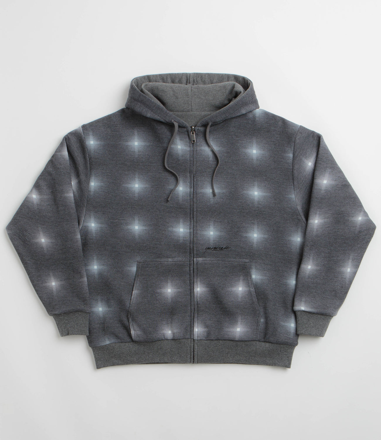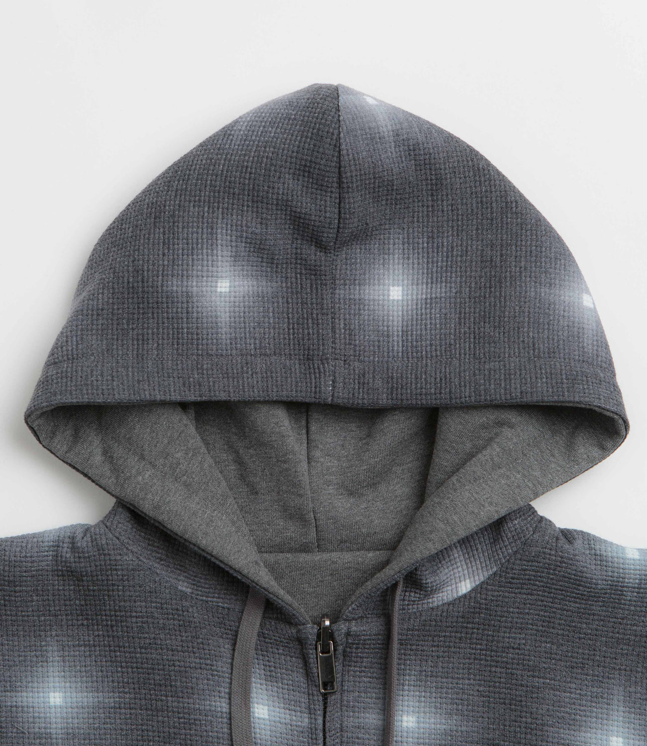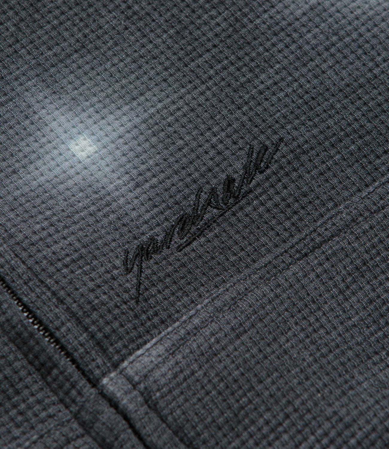 Yardsale Reversible Thermal Hoodie in Black and Charcoal. Reversible with a printed thermal side, this Yardsale hoodie is made from 100% cotton. Featuring an adjustable drawstring hood, a full length zipper fastening and ribbed cuffs, this black Yardsale hoodie is finished with two front pockets, a custom YS zip pull and embroidered branding.