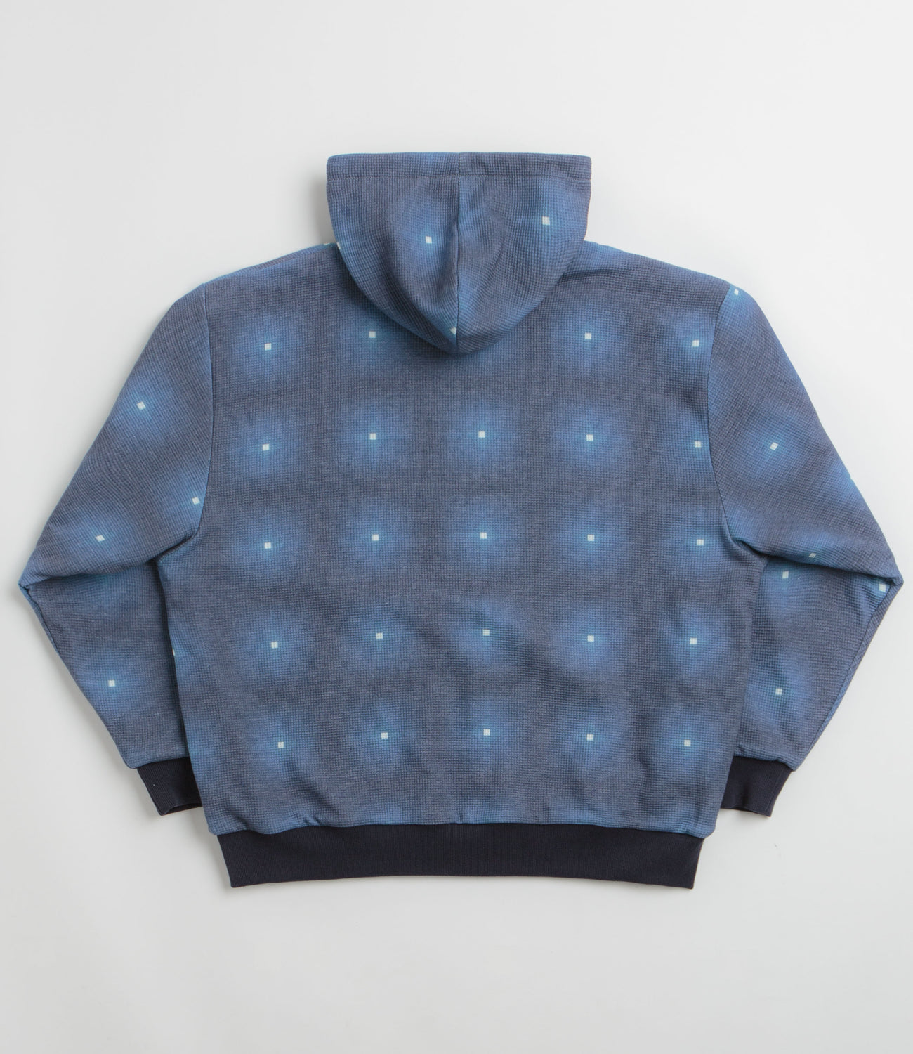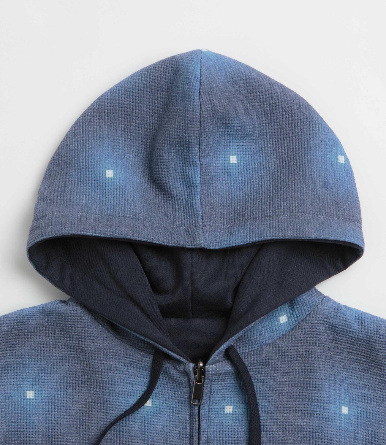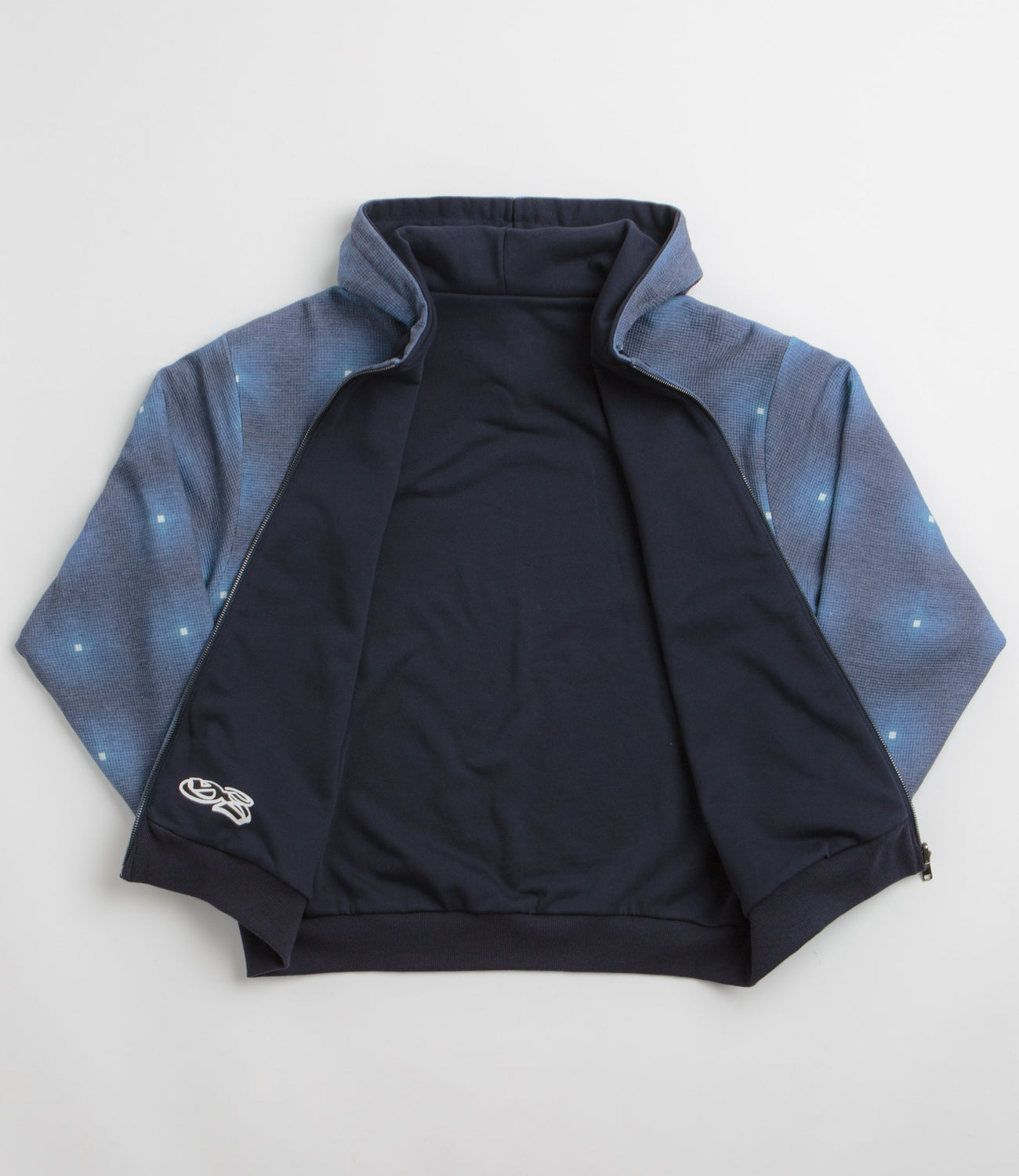 Yardsale Reversible Thermal Hoodie in Navy and Navy. Reversible and made from 100% cotton, this Yardsale hoodie is styled with an alternative thermal jersey side. Featuring an adjustable drawstring hood, a full length zipper fastening, ribbed cuffs and a woven elastic hem, this navy Yardsale hoodie is finished with two front pockets, a custom YS zip pull and embroidered branding.