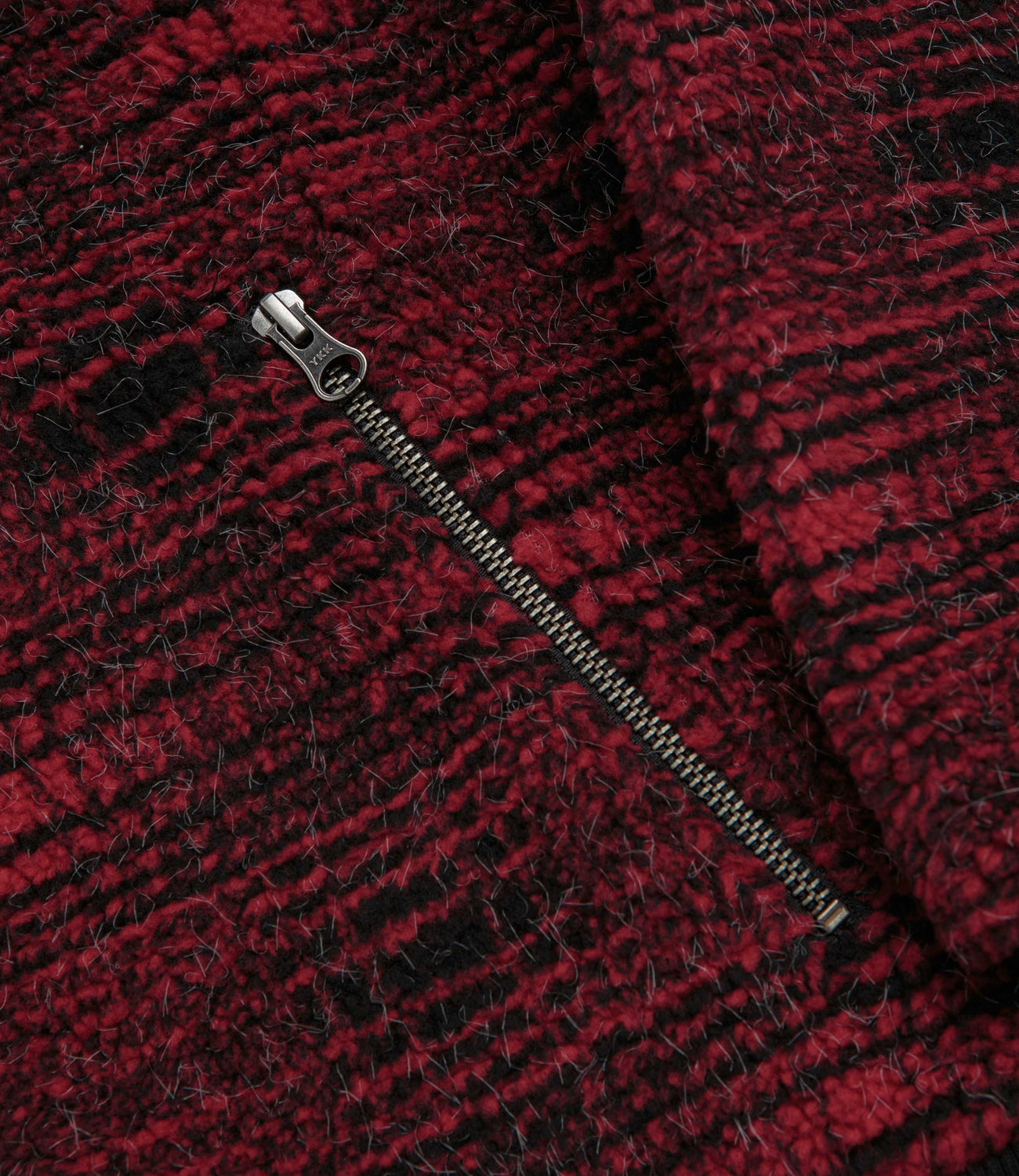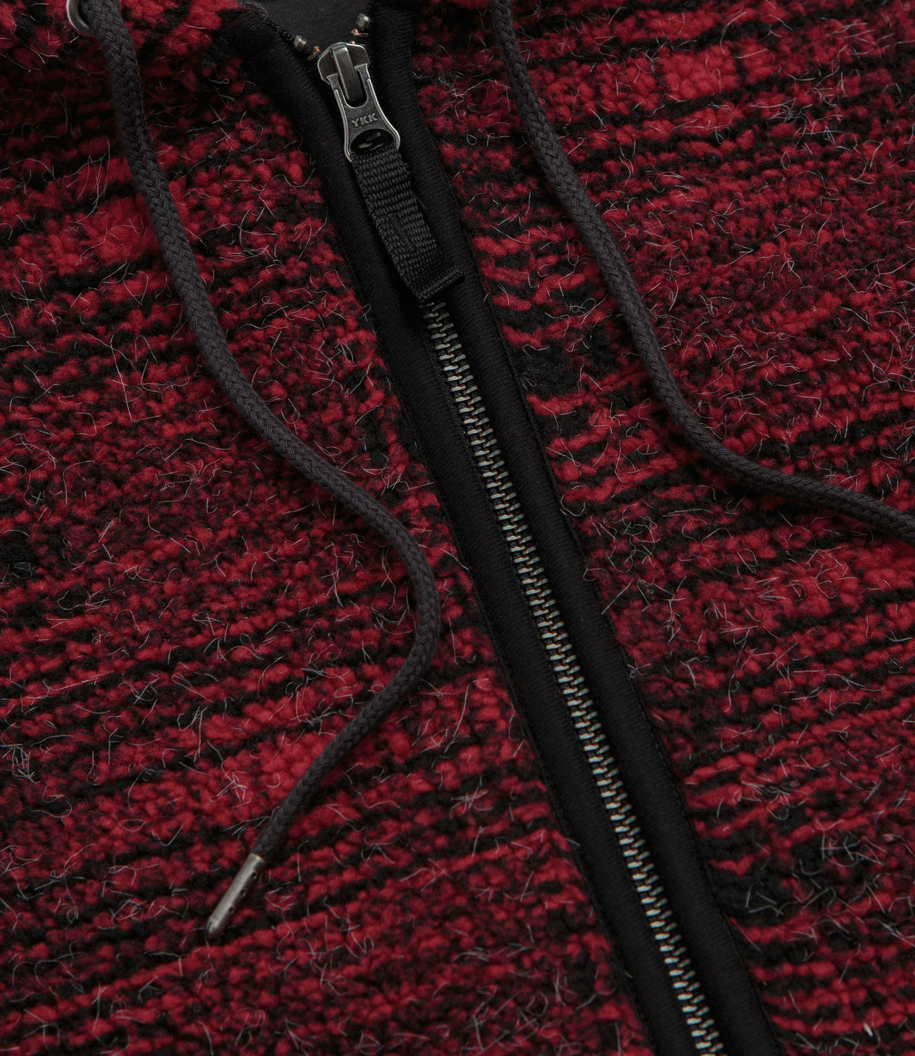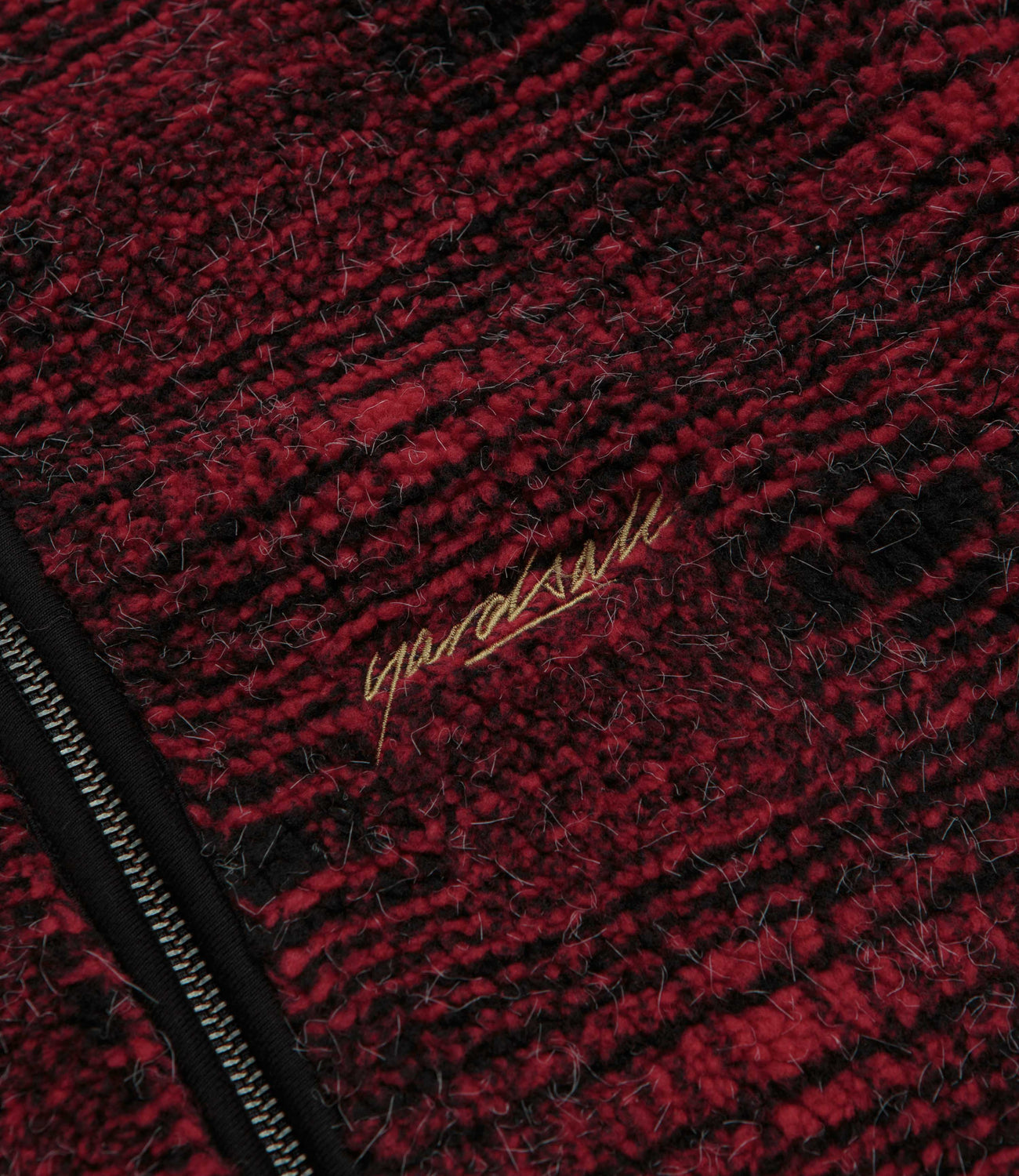 Yardsale Sherpa Fleece Hoodie in Red. Made from a cotton-polyester blend with a jacquard tartan pattern, this regular fitting Yardsale hoodie is designed with a drawstring adjustable hood. Featuring a full length zipper fastening, ribbed cuffs and two zippered front pockets, this red Yarsdale hoodie is finished with a woven elastic hem and with a custom YS zip pull.