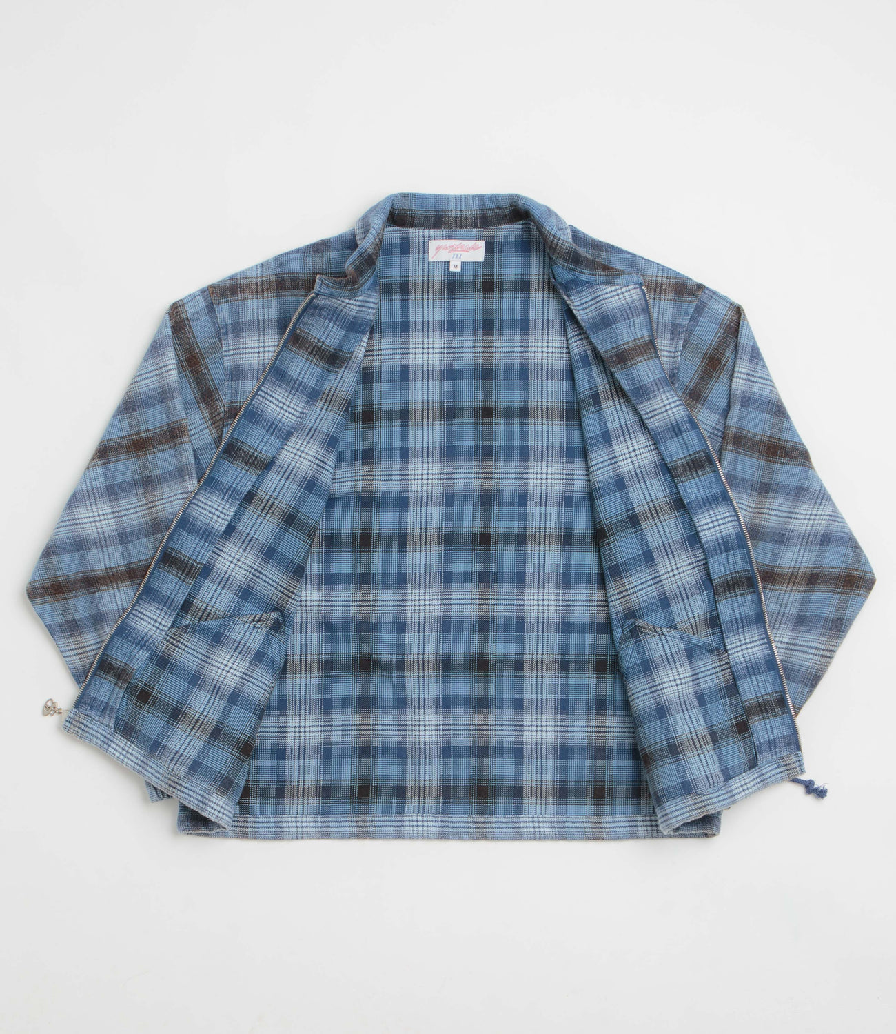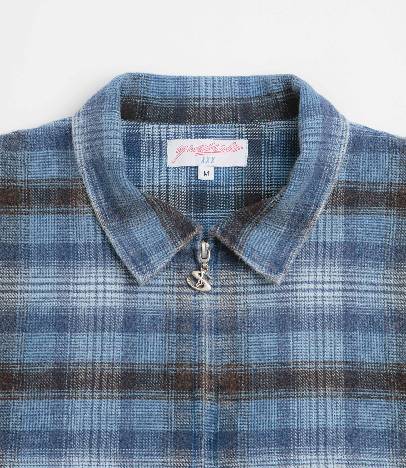 Yardsale Tartan Jacket in Blue. Regular fitting with an all-over jacquard tartan construction, this Yardsale jacket is made from 100% cotton. Featuring a Bio-ball wash, a stand collar and a full length zipper fastening, this blue Yardsale jacket is finished with two front pockets, elasticated cuffs, an adjustable hem and a custom YS zip pull.